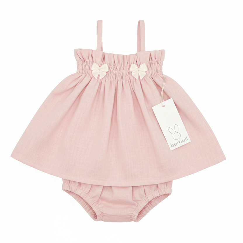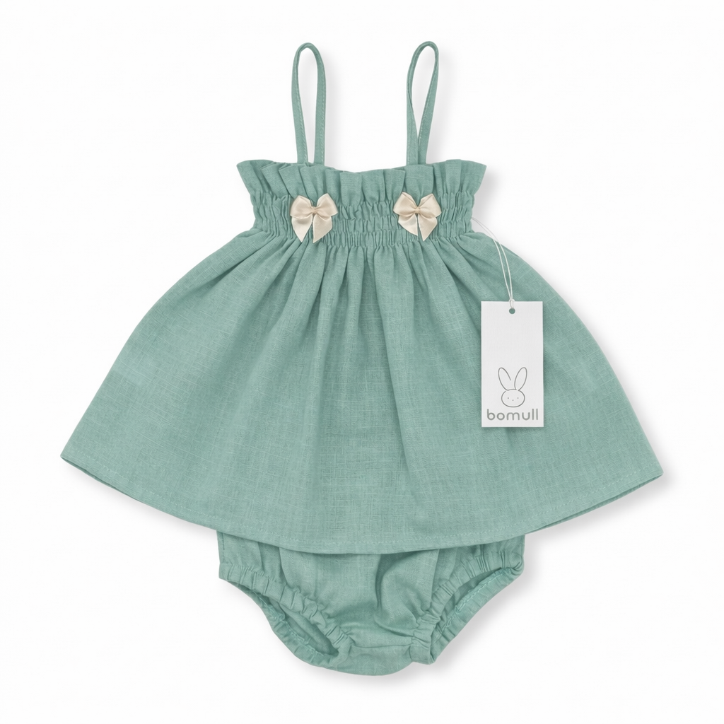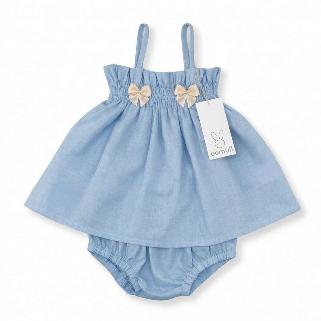 ¡Viste a tu bebé con estilo y comodidad con nuestro hermoso Asoleador o Vestido de Tiras y Calzón! Con una delicada batola en corte A, tiras ajustables y pecho encauchado para un ajuste perfecto. El calzón a juego completa este conjunto encantador. ¡Haz que tu bebé se vea y se sienta genial con cada paseo!